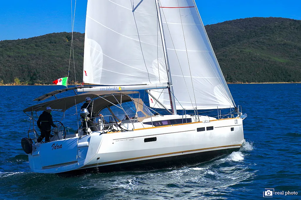 Badeplattform, Bimini, Cockpit-Kissen, Kühlschrank, Elektrische Toilette, Solar-Panele, Sprayhood, Teakdeck, Inverter