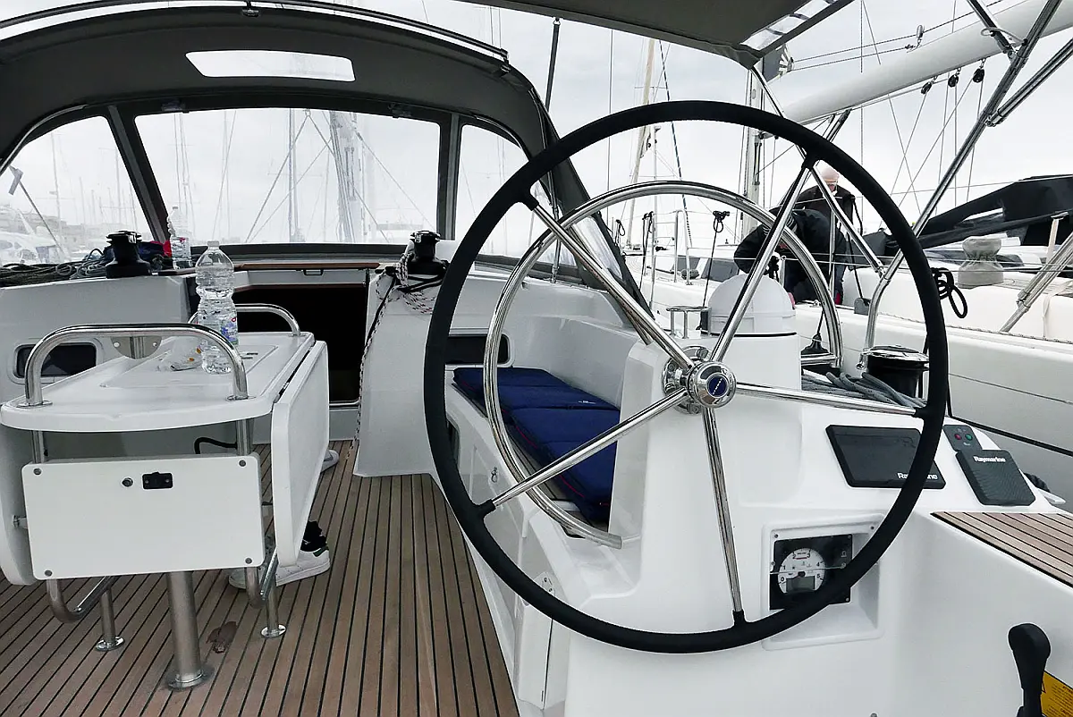 Badeplattform, Bimini, Kühlschrank, Beiboot, Inverter, Sprayhood, Cockpit-Kissen, Solar-Panele, Fäkalientank